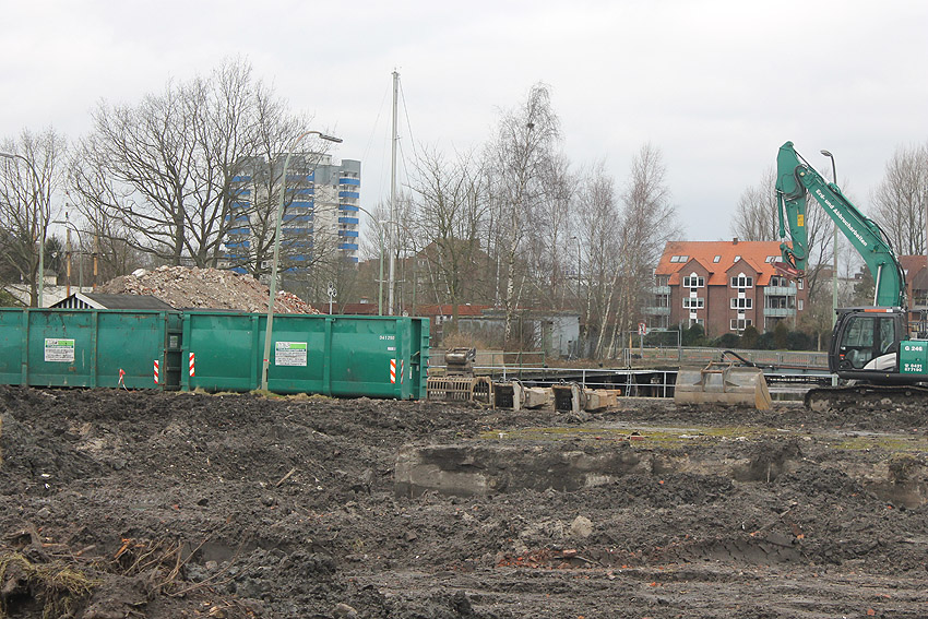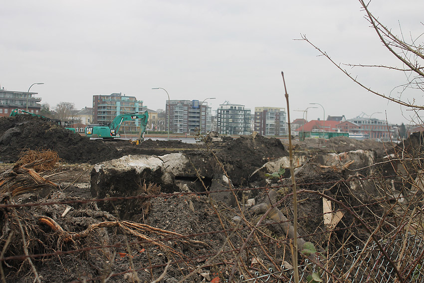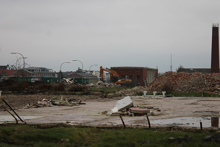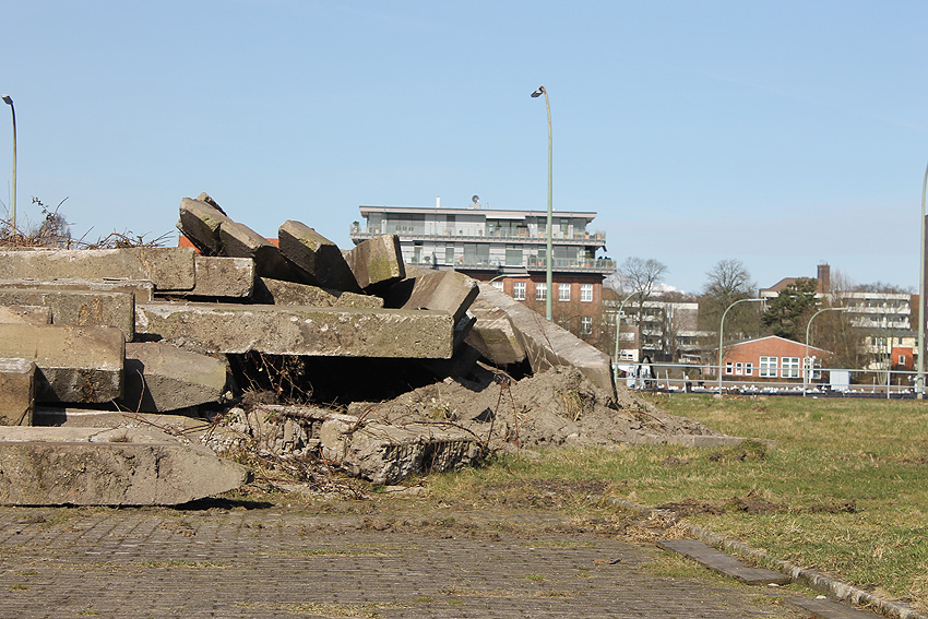 Die Bunkerdecke liegt nun wieder frei. Nur noch ein Gebäude existiert neben dem Tiefbunker auf dem Abrissgelände. Der Schornstein des Heizwerkes dürfte alsbald fallen. Ob die Arbeiten am Tiefbunker (wohl zunächst mit dem Abriss der Bunkerdecke) noch dieses Jahr beginnen, ist unklar.
