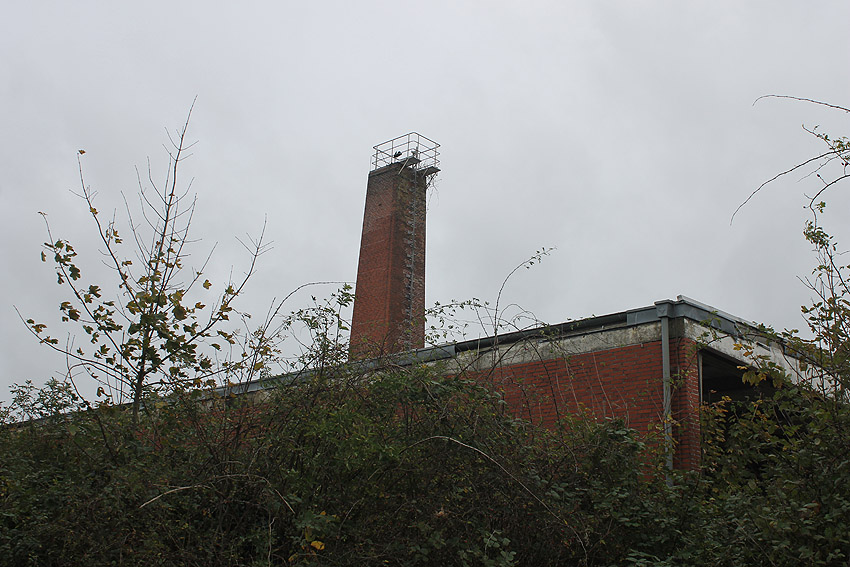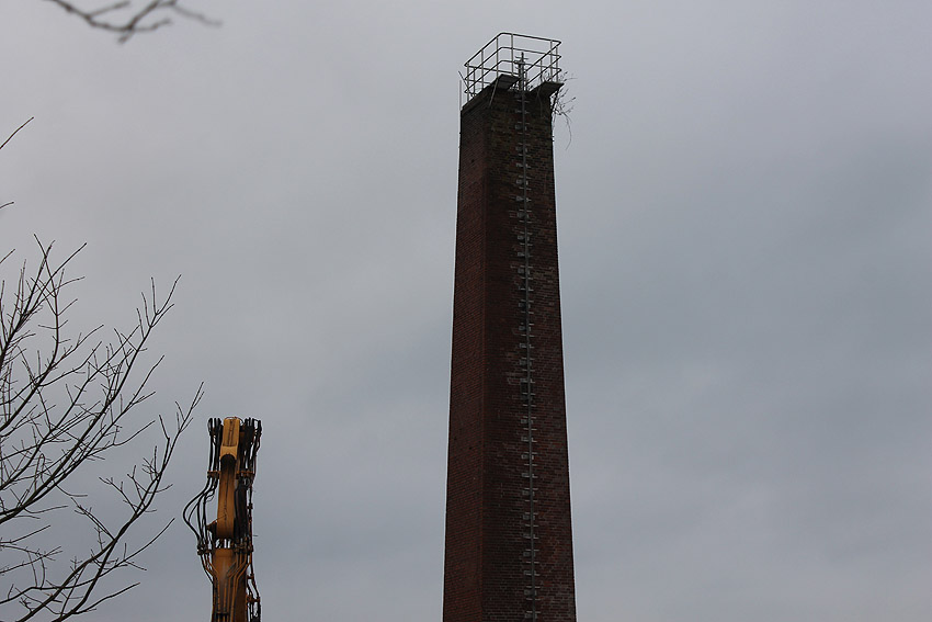 Der nahe am Bunker befindliche charakteristische Schornstein des ehemaligen Heizwerkes ist gestern gefallen.