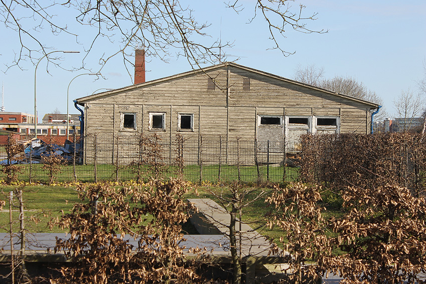 Auf dieser Fläche am Westbeginn der Wiesbadenbrücke befand sich die historische Baracke, die bereits vor einigen Wochen entfernt wurde. Diese Baracke wurde früh nach Kriegsende an der Stelle einer Ursprungsbaracke errichtet, die teilweise abgetragen worden war, deren Mittelbereich allerdings aber in den "Neubau" der frühen Nachkriegszeit integriert worden ist.