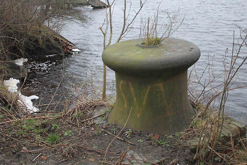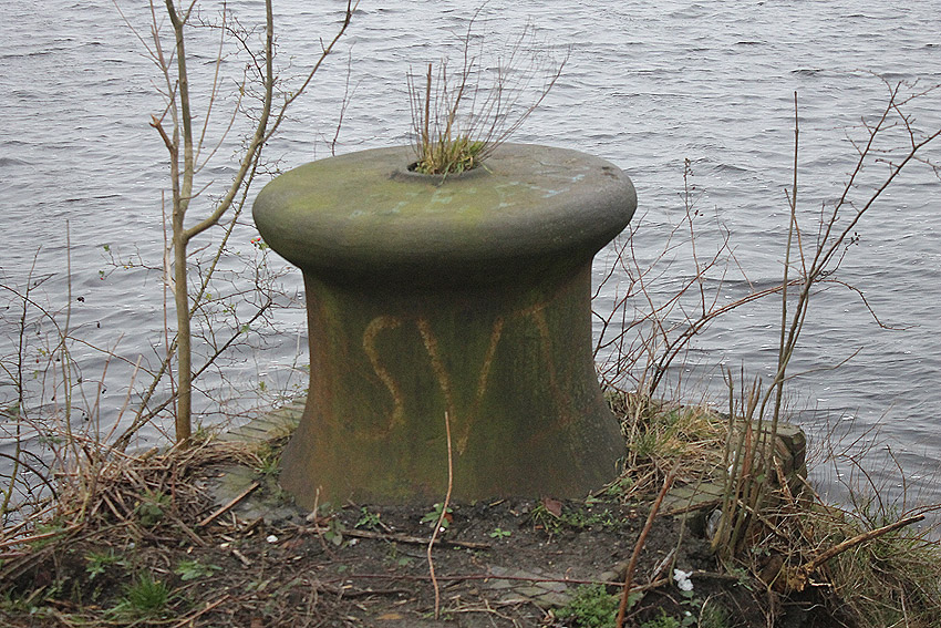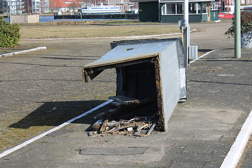 Das Objekt, bestehend aus zwei nebeneinander versetzt liegenden, eventuell durch eine Öffnung verbundenen Stahlbeton-"Quadraten", wurde im Januar 2018 aufgrund der Abrissarbeiten auf der Wiesbadenbrücke "entdeckt". Anscheinend war des nirgends verzeichnet. Bis in die Neuzeit stand genau auf der Objekt-Decke, die mit Erdgleiche in einer Linie lag, der Verkaufsstand für die dortigen Oldtimertreffen. Ist dies ein Munitionsbunker (Erster Weltkrieg?), ein Kohlenbunker (Kohlenzunge / Erster Weltkrieg?), eine Süßwasserzisterne (Schiffsversorgung? / Kühlwasser?), oder ein Tank (Öl / Treibstoff?) gewesen? Oder war es sogar eine weitere Personenluftschutzanlage? Der Abriss des Objektes erfolgt in Kürze. Der unter Wasser stehende Innenbereich wurde bereits leergepumpt. Wir berichten weiter.