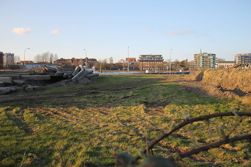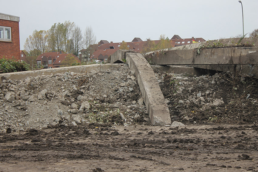 Im Bereich der Wiesbadenbrücke ist nun nach dem Abbruch des bis zuletzt verbliebenen Anliegergebäudes lediglich der Tiefbunker als letzte massive Gebäudestruktur noch existent. Mit seinem Abriss ist alsbald im Januar 2018 zu rechnen.