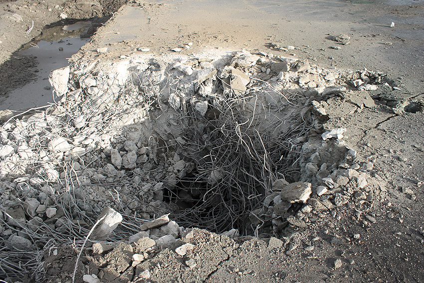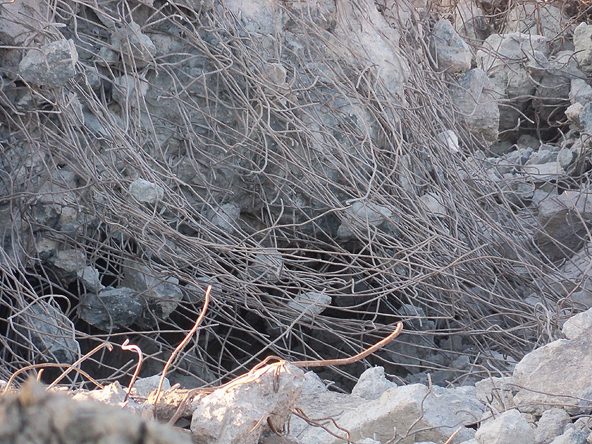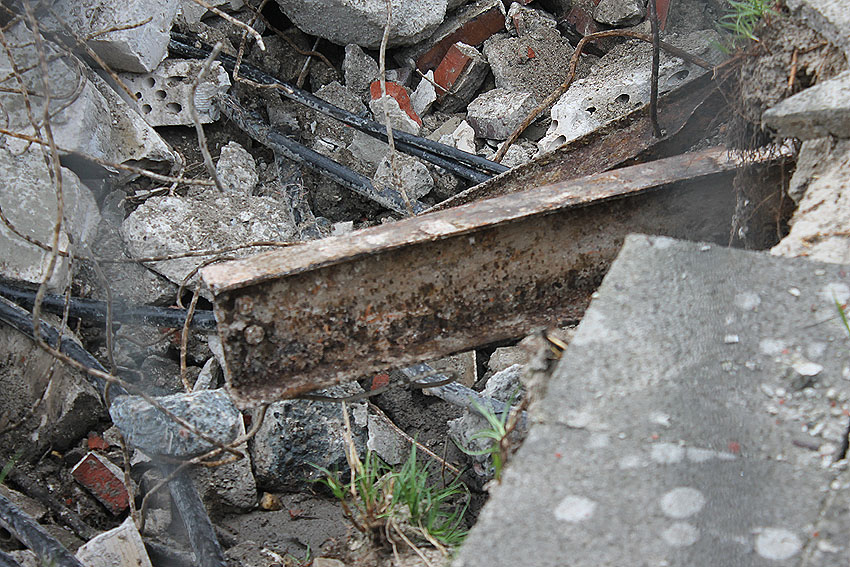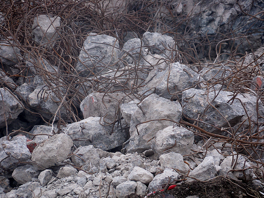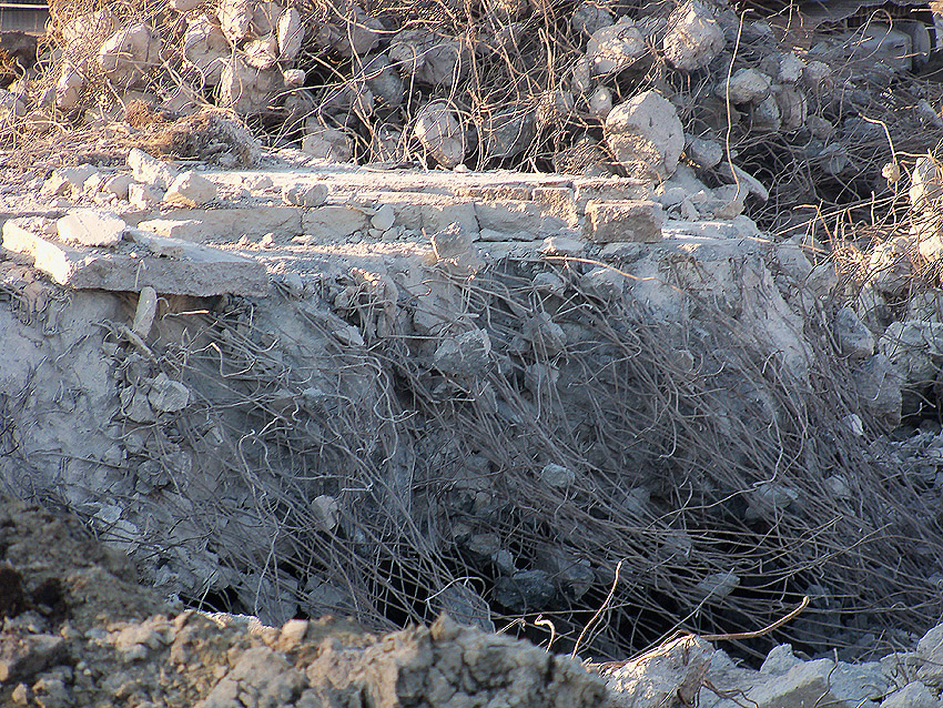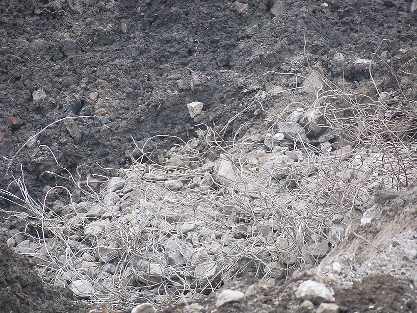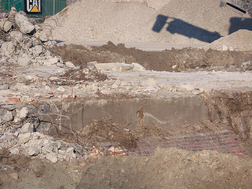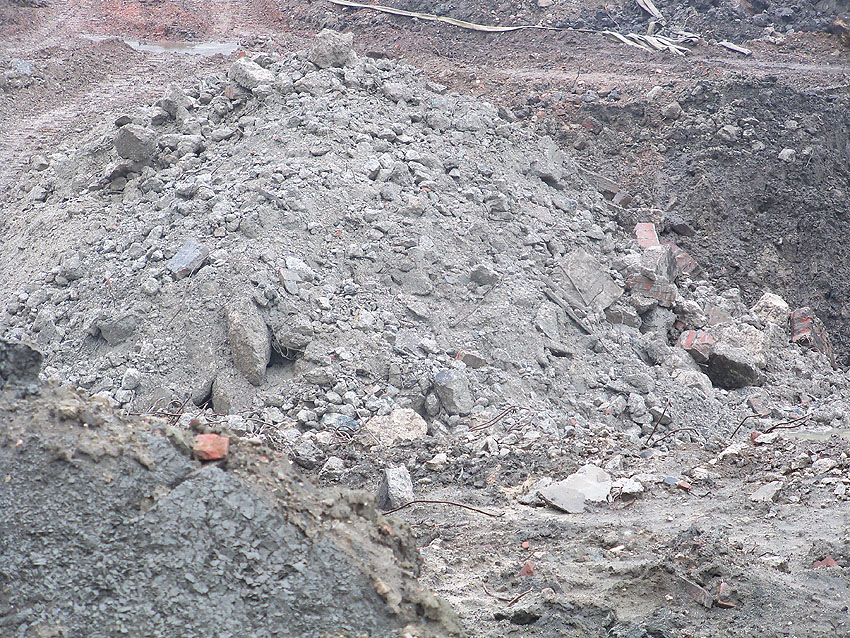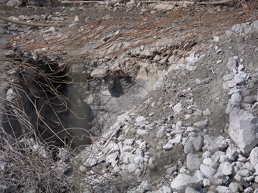 Mittlerweile ist die Decke des Tiefbunkers fast zur Hälfte abgebrochen. Zwei Bagger arbeiten sich mit dem Meißelhammer jeweils aus Osten und Norden vor. Die Höhe des Bunkers wurde inzwischen mit circa 5,50 Metern angegeben (+-1,50 m Decke - ohne nachträgliche Betonfertigträger - / 2,50 m Innenraumhöhe / 1,50 m Sohlplatte).