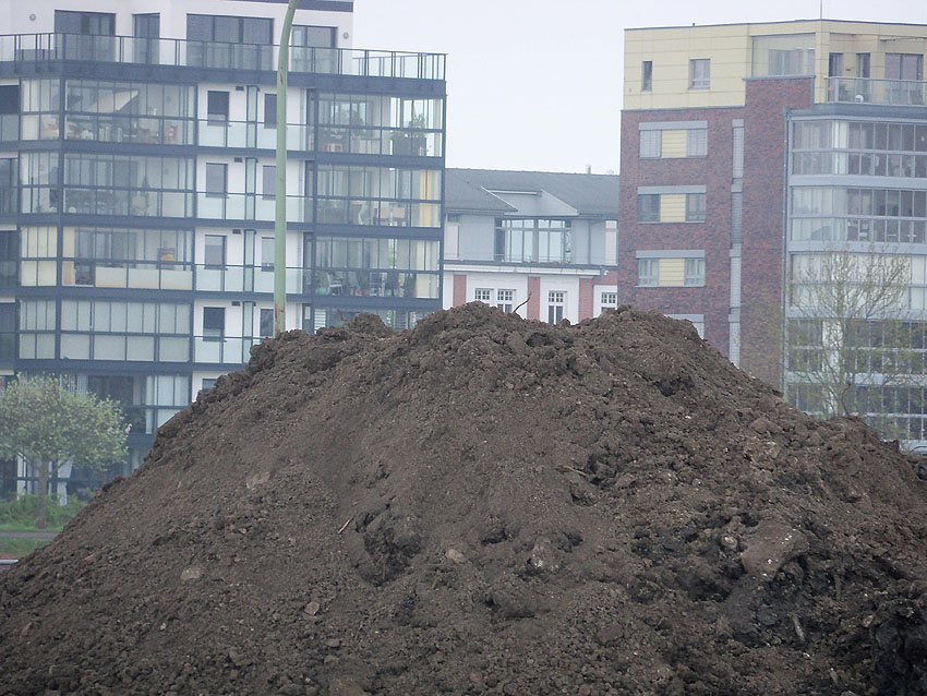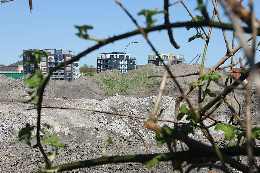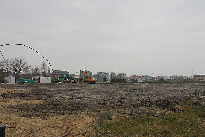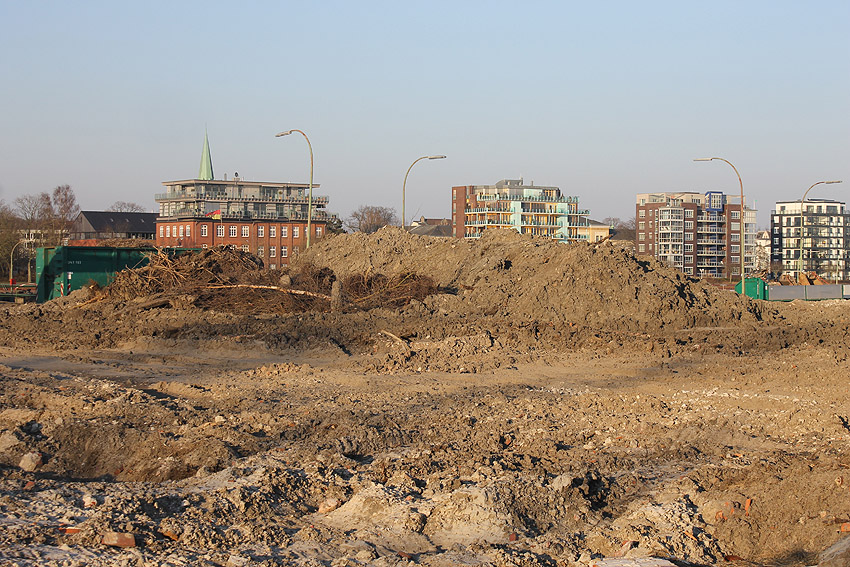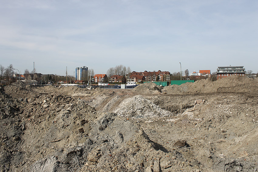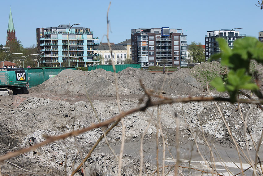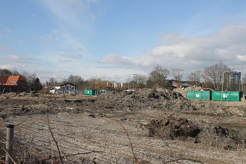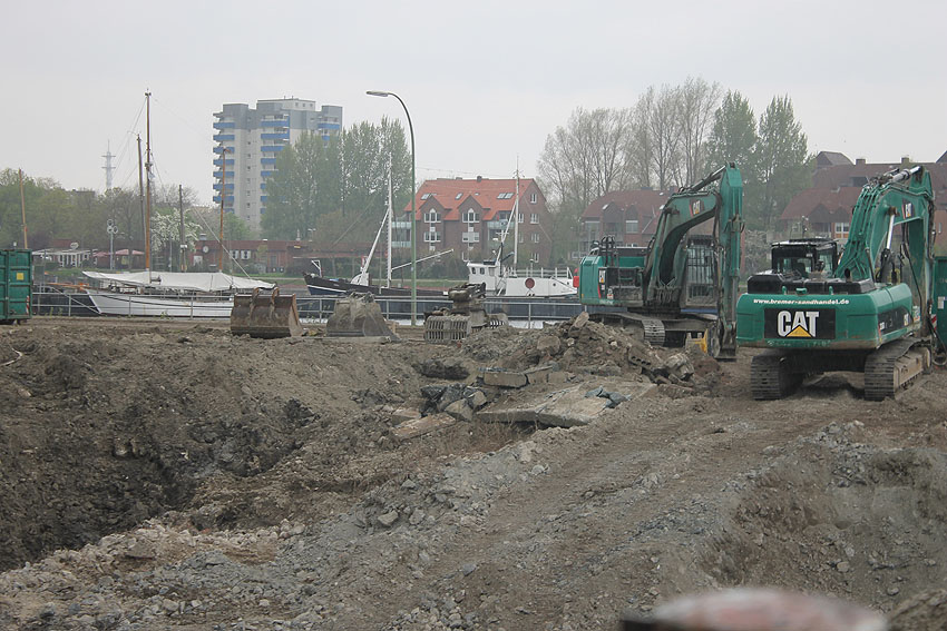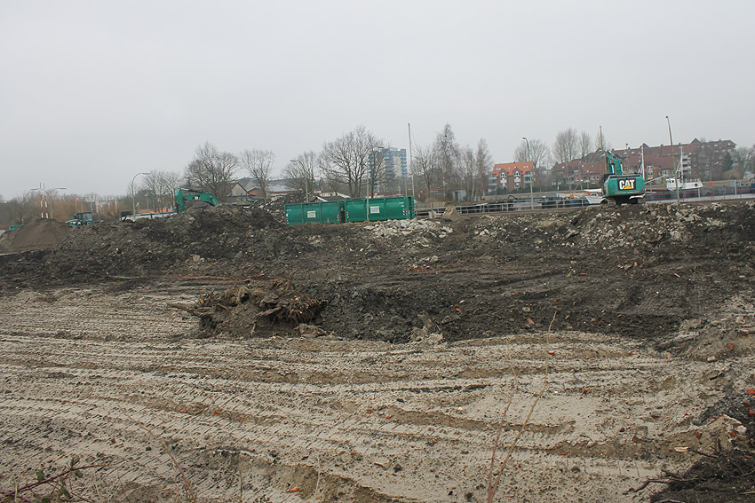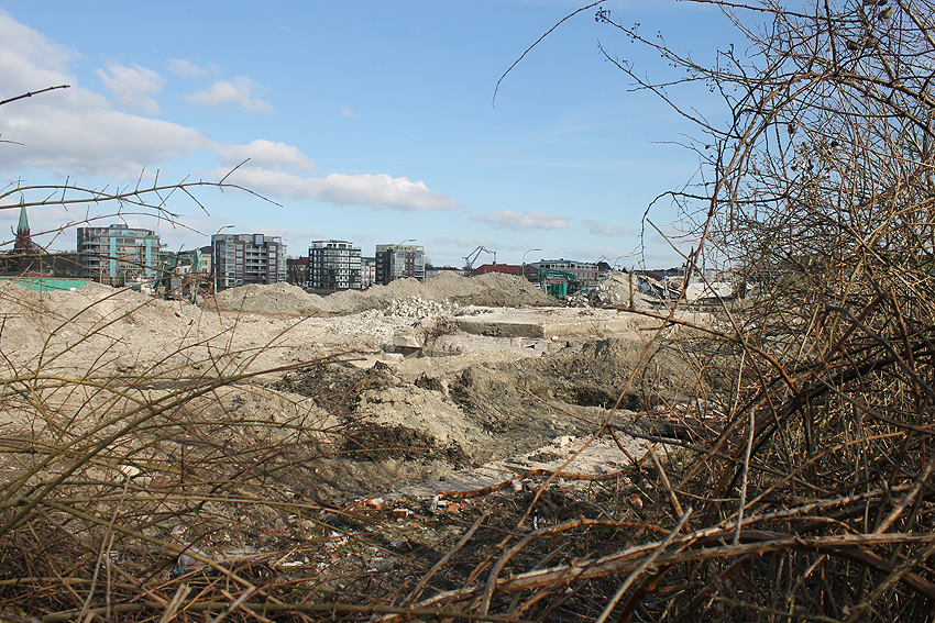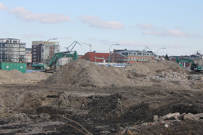 Die Sohlplatte des Tiefbunkers wird weiter abgebrochen. Hinweis: Die vermuteten Kranaufnahmen aus Stahlbeton, welche sich östlich des Bunkers befanden, wurden bereits vor einigen Wochen entfernt. Die Reste der Nordwestwand des Bunkers mit dem letzten "Rauchen verboten"-Schriftzug sind vor knapp zwei Wochen zerkleinert worden.