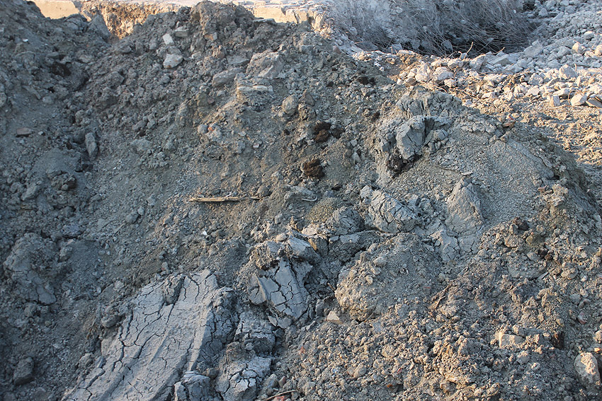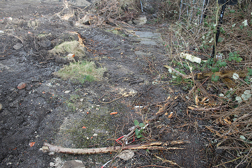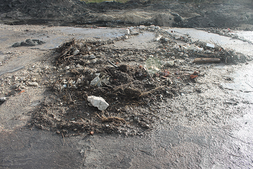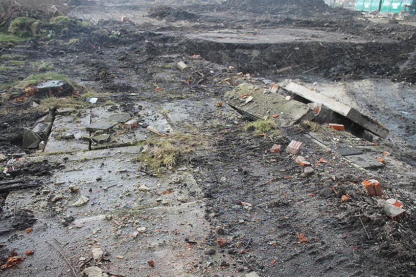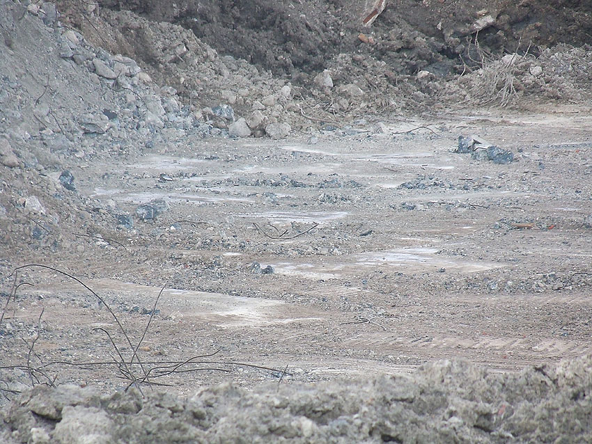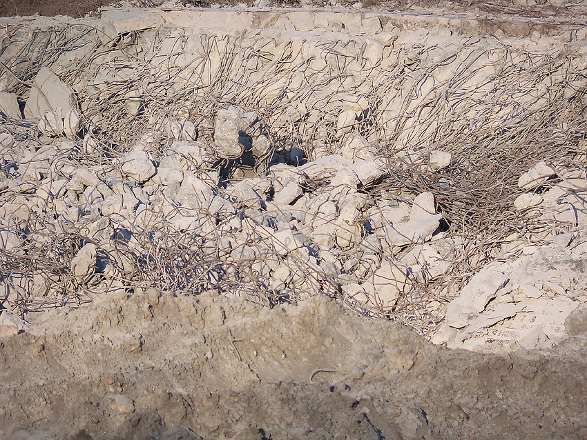 Nicht unerhebliche Teile der Ostdachecke des Tiefbunkers sind bereits abgerissen. An Objekt 2, welches wohl eine Zisterne darstellte, erinnert nur noch eine Erdkuhle mit einigen Trümmerstücken.