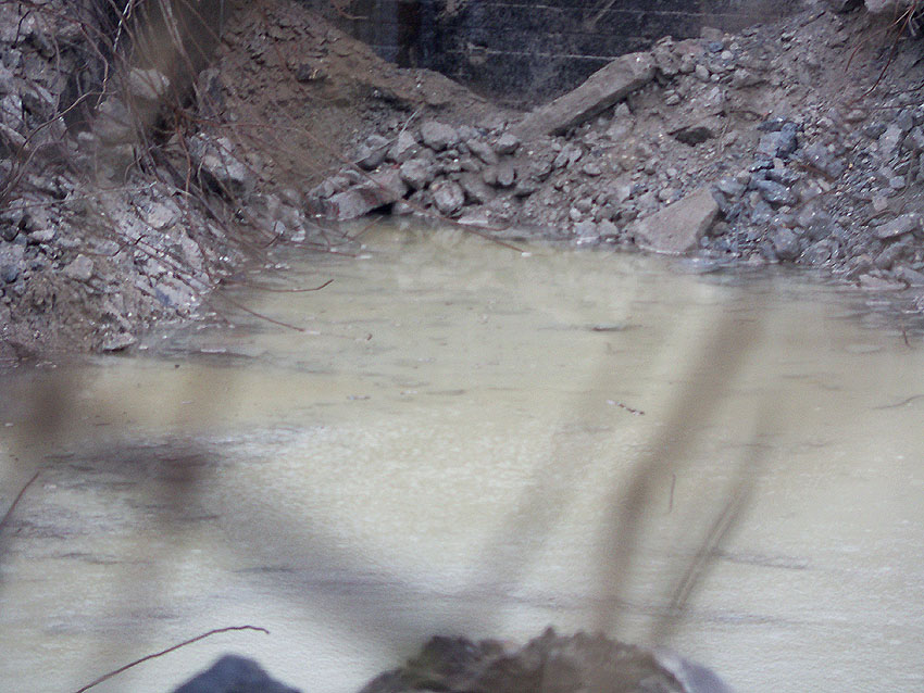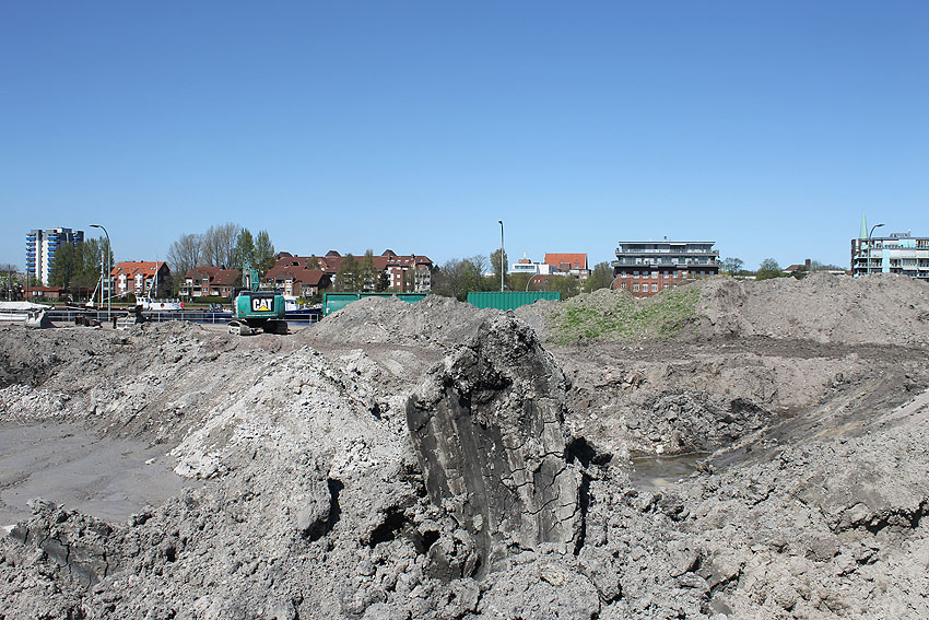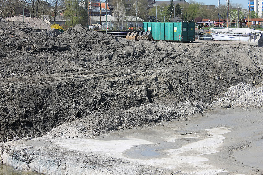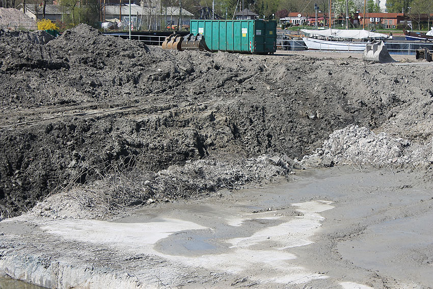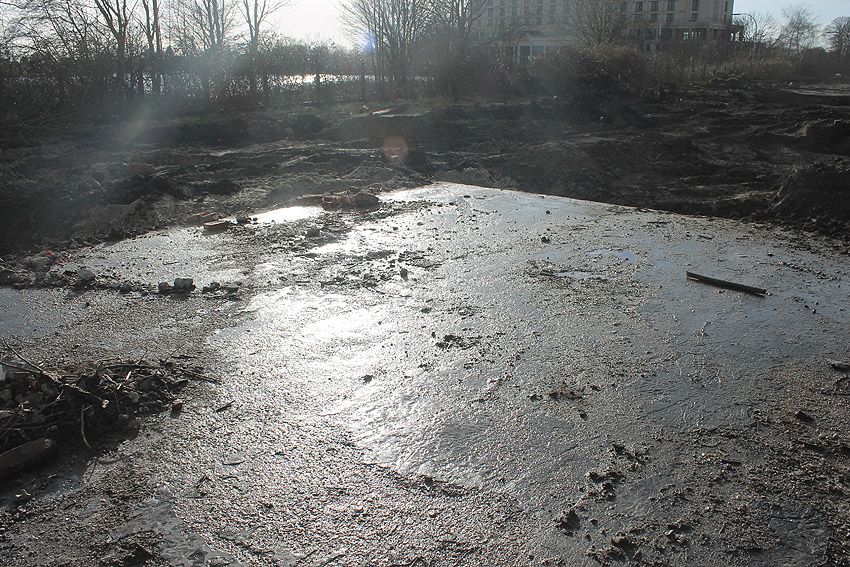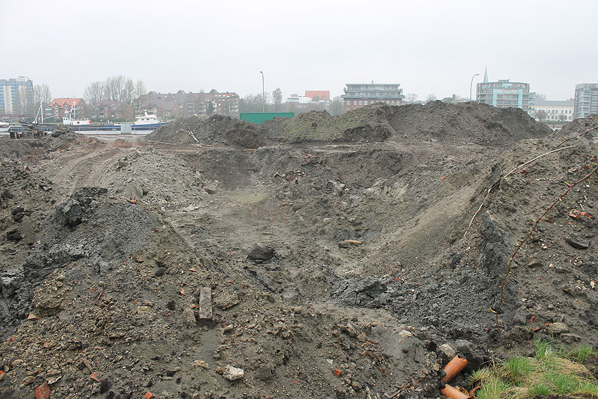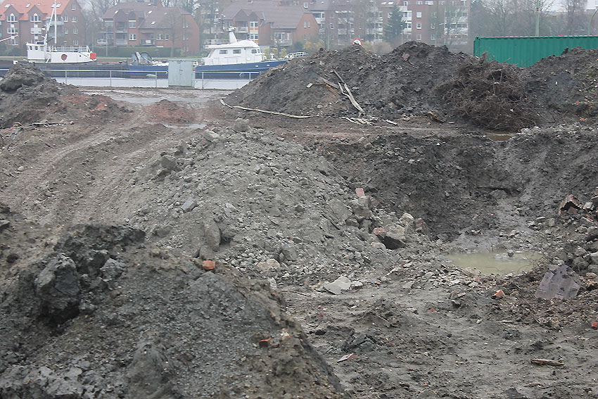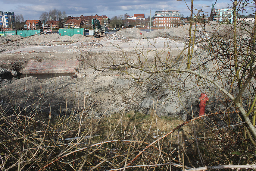 Die Bodenplatte des Tiefbunkers ist großteilig zerstört und damit nun Vergangenheit. Der Sohlbereich des Bunkers ist mittlerweile nicht unerheblich mit Grund- und Hafenwasser vollgelaufen.