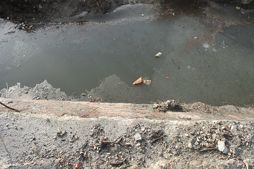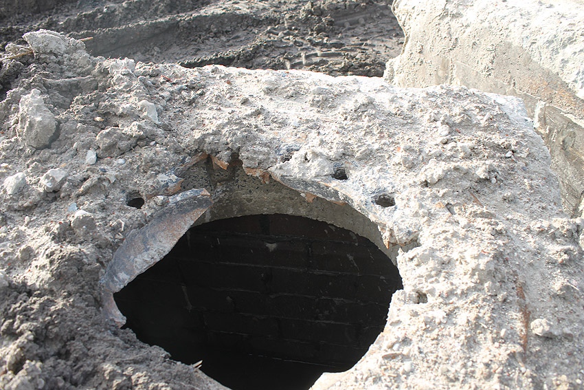 Noch einmal oberes Bild: Wohl vom Tank 2 stammende Rest-Umrandung des dortig eingebrachten Kanaldeckels: