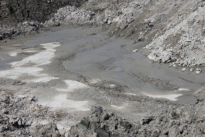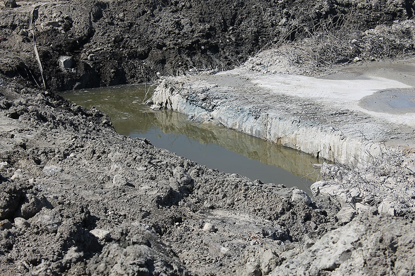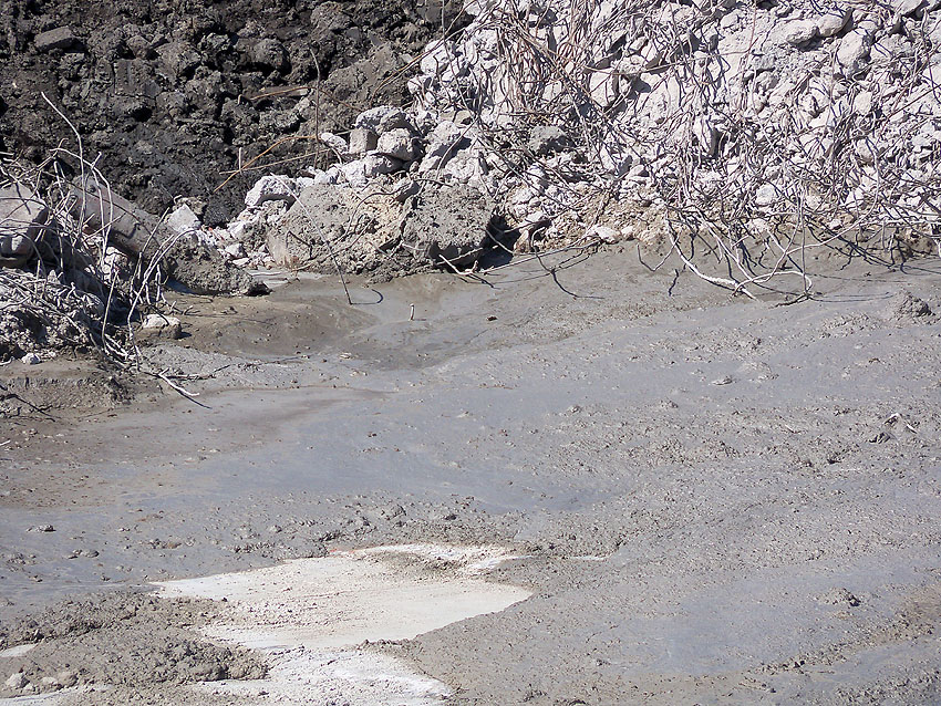 Tank 2: Hier zu sehen die Leitungen im Tank. Dessen äußere Öffnungen sind mit Schlick verstopft: