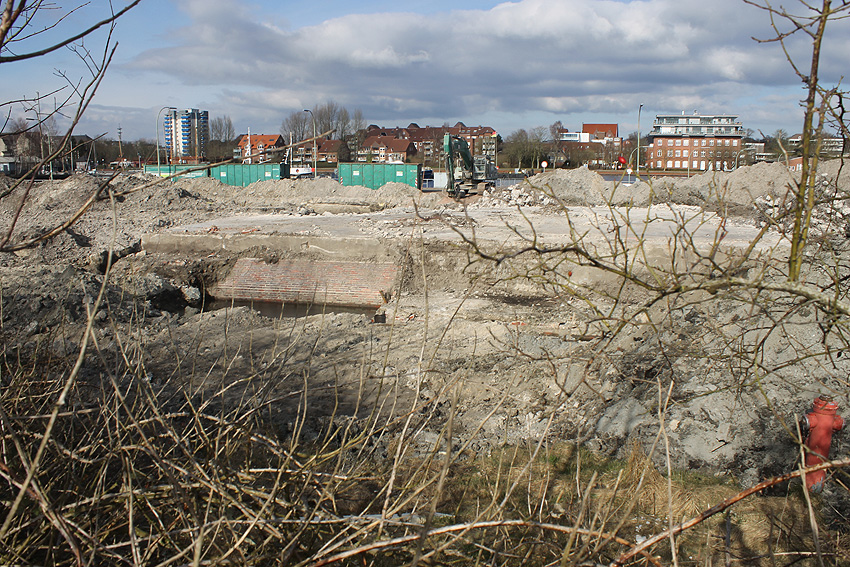 Unser herzlicher Dank an Spar & Bau Wilhelmshaven für die Begehungsermöglichung und Führung, sowie an die Firma BSG, dass wir die Bunkerdecke während des Abrisses noch einmal betreten konnten.