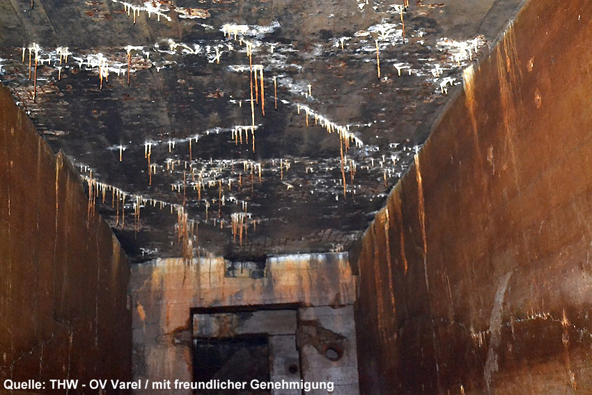 Die Bunkerdecke ist mittlerweile zu Drei Vierteln Vergangenheit. Der Schutt der Decke liegt fast im gesamten Innenraum.